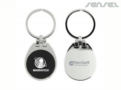 These promotional keychains come with a leather like front and polished metal back. They are great for stores and as souvenirs!