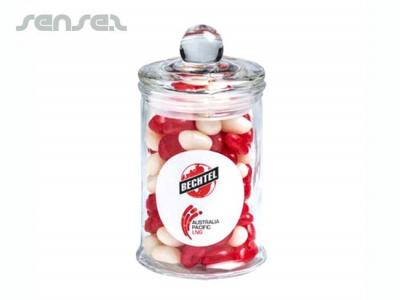 Other innovative corporate gift ideas that could be suitable to create brand awareness include these cheap promotional Drum Filled With Lollies (1L), quirky advertising gifts such as these Apothecary Candy Jars (80g) or how about using one of our more bespoke custom made products such as these great quality JELLY BELLY Jelly Bean Apothecary Petit Jars (115g)?