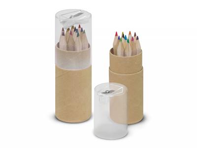 Smart Pencil Tube with Sharpener Lids are ideal for any campaign or event, from Kids to educational promotions, mailouts and in-house branding. They include 12 assorted colour pencils in a convenient unbleached cardboard tube with a translucent plastic cap which features a built in pencil sharpener.