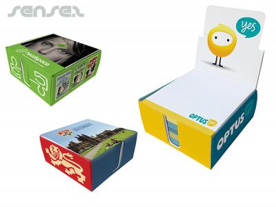 These fully customised boxes contained 6 pads of 50 sticky notes sheets. You can print the same artwork on all the notepads or different artworks on each of them at no extra cost. The box comes with a foldback billboard lid which makes it a great display item and a handy counter/desk accessory.