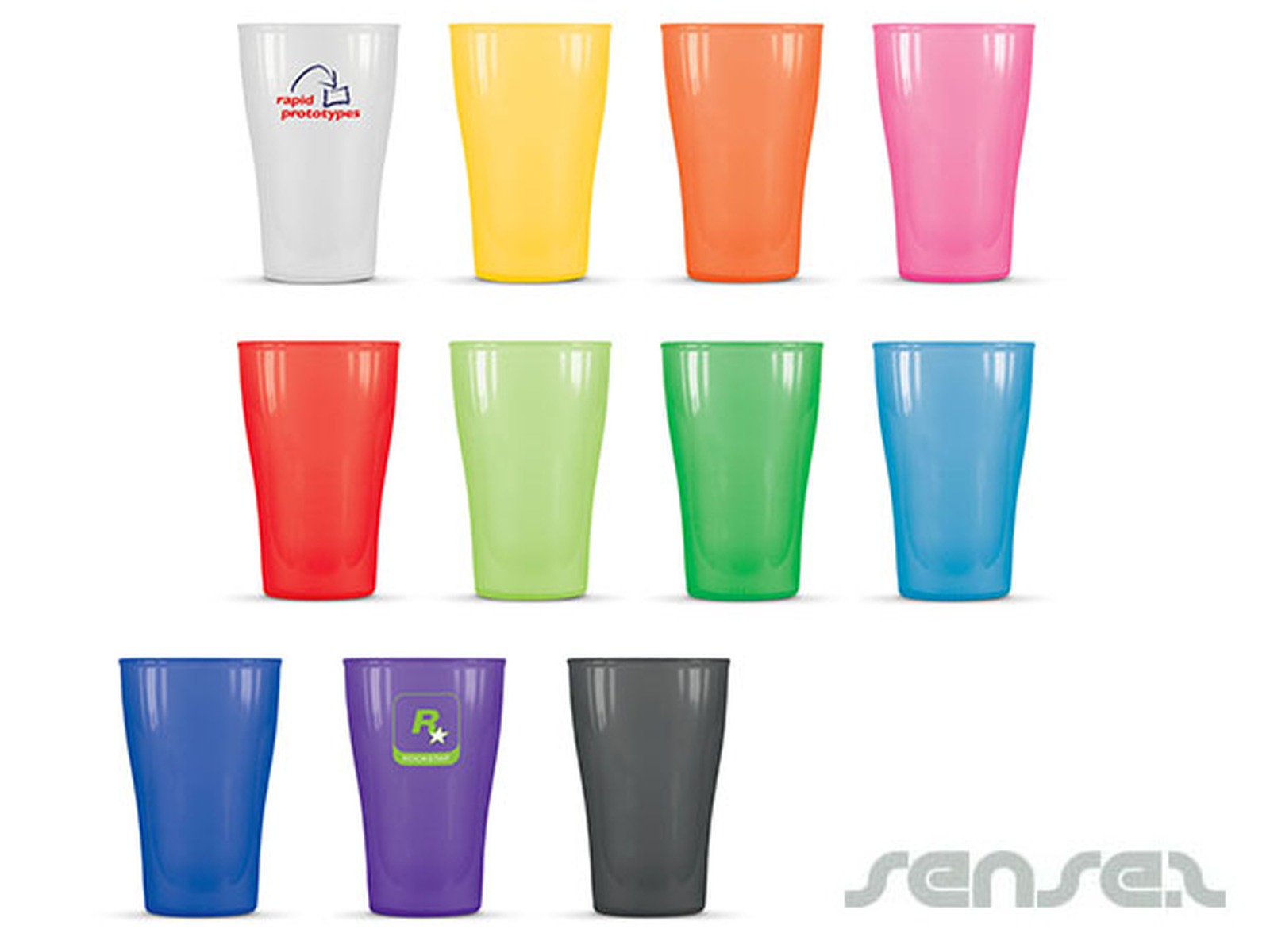 Promotional Supporter Cups are inexpensive, reusable, 400ml plastic cups, designed for use at events and functions. They have a translucent finish with a decorative matt pattern on each side. These custom printed cups are manufactured from polypropylene which is shatterproof, odour-resistant and BPA-free.