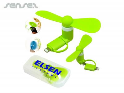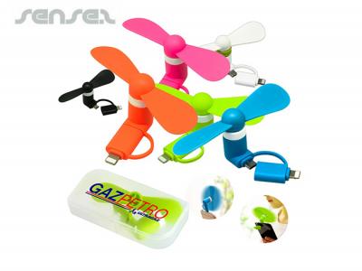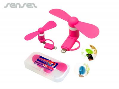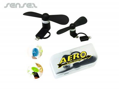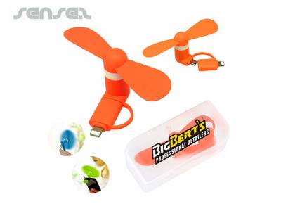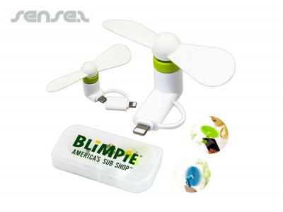 Have these handy phone fans in your pocket ready to cool you down by using your iphone or other smartphone/ Android phone power. Simply plug in and go. Your logo is printed on the custom fan blade or charger part. With a lightweight giveaway that can easily fit in any pocket, these custom fans are only 17 g in weight! Available in Black, White, Blue and Orange, Pink, Green. Great way to keep your fans cool over summer or at your outdoor summer event! Ideal also for sports teams or travel promotions as well as IT or phone company give-aways