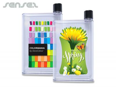 Other innovative corporate gift ideas that could be suitable to create brand awareness include these cheap promotional Notebook Shaped Water Bottles (500ml), quirky advertising gifts such as these Nobel Flat Small Drink Bottles (380ml) or how about using one of our more bespoke custom made products such as these great quality Nobel Flat Drink Bottles (450ml)?