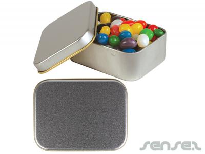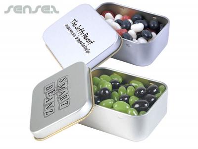 Incorporate branded metal tins with assorted mini jelly beans (50g) in your next promotional campaign
