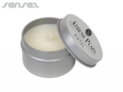 These Custom Candles come in a nice silver tin and provides relaxation through ambient lighting and a pleasant vanilla scent. All natural soy based candle which burns cleaner, longer and more efficient than paraffin with no petrol-carbon soot. Perfect for spa promo or hotels souvenir!