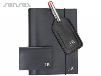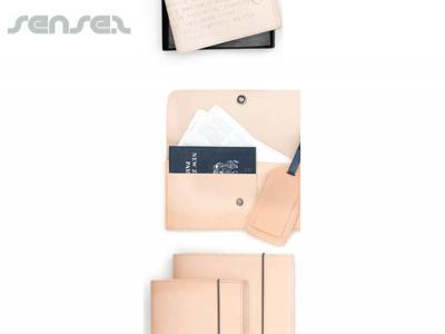 as indicative pricing based on 100 pcs : leather journal - $72 , leather wallet $35, leather pencil wrap $49, leather luggage tags - $19.50