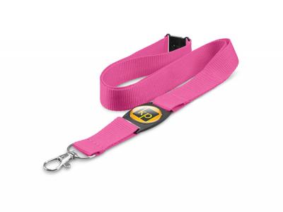 Polyester lanyard complete with a spring loaded metal clip, a safety clip and a unique plastic insert which can be branded in spot colour or full colour with a resin coated finish and the lanyard can also be branded. Perfect for business conventions!