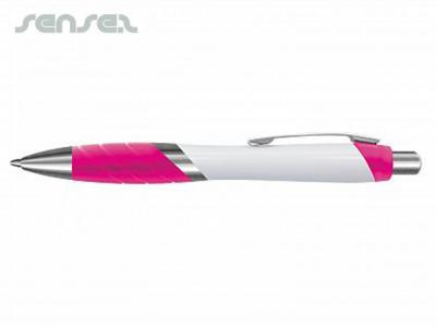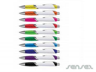 These custom plastic pens are a white barreled click to action pen with black ink. Forest printed plastic pens features a soft grip pad for ultimate comfort and comes in a range of colours. There is a option for two logo print positions on each side of the white barrel. This makes Forest promotional plastic pens perfect for any school or conference promotion as you will be able to see your business name from every angle whist using quality German ink.