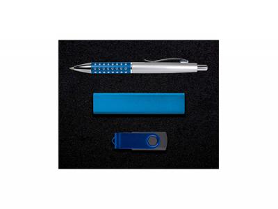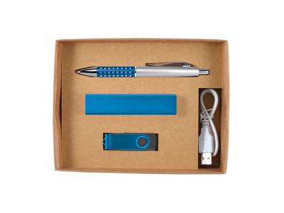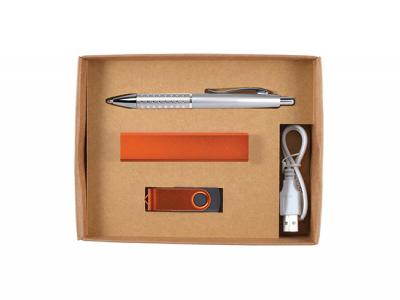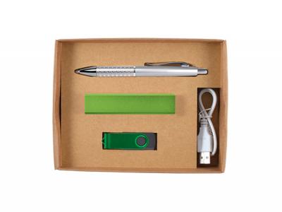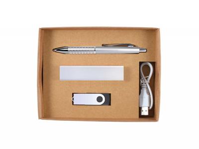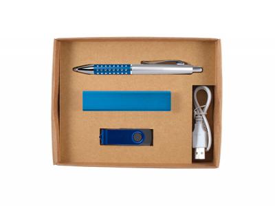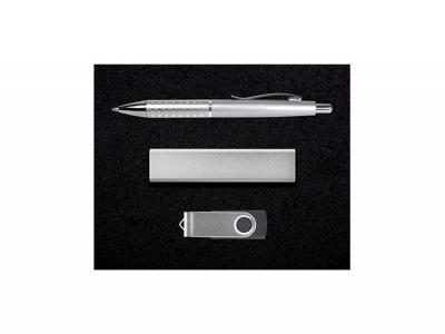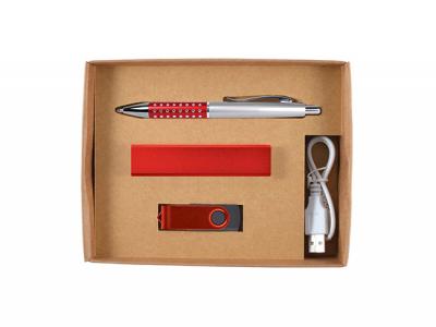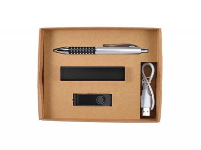 Top of the class gift set of ballpoint pen, power bank (portable phone charger), flash drive packed in a cardboard gift box with laser cut foam insert. Perfect as a special gift!