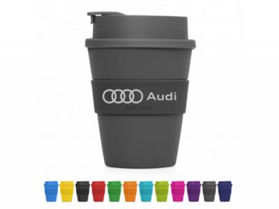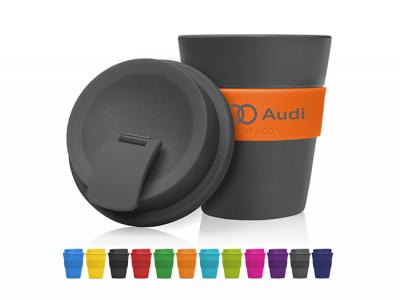 Promotional Gangnam Eco Travel Mix & Match Cups are made from PP and are BPA free and are 12oz or 356ml. These mugs have a hard plastic screw on lid and silicone sleeve and now with a flip-top to prevent annoying splashes. You are able to mix and match sleeves, lids and cup colours as desired. The flip top stoppers now must match the lids.