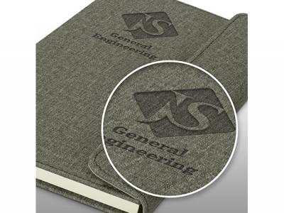 We can emboss your logo into the promotional canvas notebook folios (a5). Embossing is similar to a stamping process. An extra cost may apply to get your canvas notebook folios (a5) embossed.