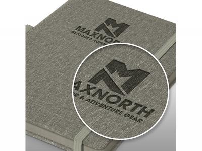Silkscreen Printing your promotional heather textured notebooks (a5):Your promotional heather textured notebooks (a5) can be silk screen printed in 1 or more colours. Costs shown include a 1 colour logo print on your custom branded heather textured notebooks (a5). We can print more than 1 colour, however it incurs extra costs. We can achieve a perfect PMS colour match for the print.