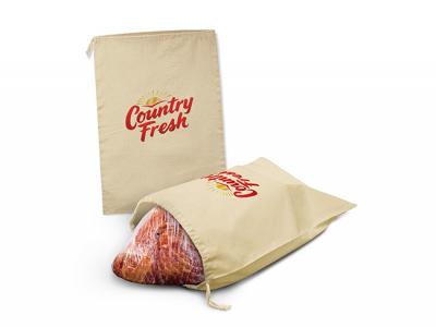 Our custom printed drawstring bags are made from environmentally friendly 140gsm unbleached natural cotton which reduces moisture loss and allows the content to breathe. For instance, they are a perfect way to present a gifted ham and the future owner can easily wash them and reuse them again and again.