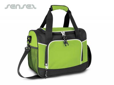 Custom print these colourful cooler bags, which are manufactured from 600D polyester with an inner lining of waterproof PEVA and laminated PE foam insulation. Perfect for outdoor activities, camping, shopping and travelling! They feature a zippered external front pocket, trendy white piping, handles with a Velcro cuff and an adjustable and removable shoulder strap.