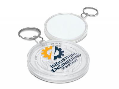 These animating and entertaining custom puzzle key chains with a self-contained puzzle help reduce stress by focusing on three little balls. The challenge is to get all of the 3 ball bearings into the center at the same time to win the game! Your brand can be shown either on the front and/or on the back, but for large block logos it is suggested to brand the back so the puzzle can still be viewed.