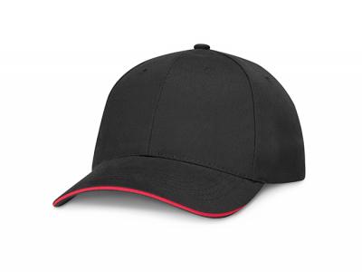 Incorporate branded black sports caps with colorful trim in your next promotional campaign