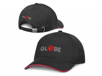We can embroider the promotional black sports caps with colorful trim with your company logo. The exact cost of the embroidery will depend on how large the embroidered area of your logo is. Sometimes logos are too detailed to enable us to effectively embroider them onto the black sports caps with colorful trim, as the stitching will simplify your logo so that any fine detail will be lost or can simply not be achieved.