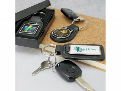Print your logo onto these custom printed leather key rings with metal plate (drop round) or one of our other innovative leather keyrings with logo and use them in your next marketing campaign as a unique giveaway item.