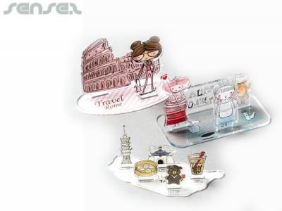Have your very own custom acrylic stand or figurine produced in your custom shape and full colour print! So you can literally have a persons photograph printed or a simpler brand character. Great for fashion store promotions, cartoon character or other corporate mascot displays at trade shows, retail shops and other corporate venues. You can also showcase your hospitality hotels, real estate agents or other custom printed acrylic signage. These branding tokens also make a great desk branding tool and brand reminder as they are a great substitute for the old snowdome display.
