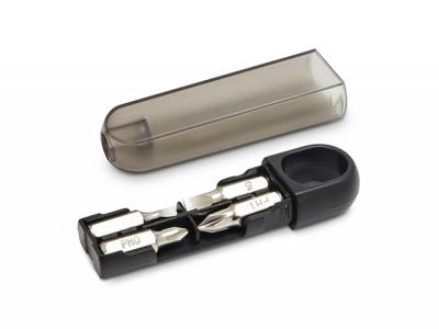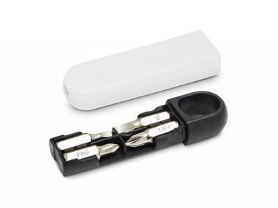 These compact screwdriver sets, which have two conventional and two Phillips screwdriver bits are a handy branded item. The outer housing acts as the screwdriver head and has a magnetic port to hold the selected bit in place makes this a convenient fix it screwdriver.