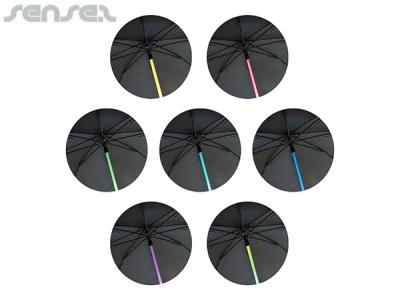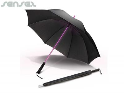 Stay dry and safe anywhere in the Universe with the Torch Umbrellas. This futuristic safety umbrella has a super bright LED shaft which lights up with multiple colours at night to ensure the user can be seen. It also features a handy flashlight in the base of the comfortable handle. The 58cm canopy is manufactured from smooth 190T showerproof pongee. It has an eight rib spring loaded metal and fibreglass frame which prevents damage to the umbrella if it is blown inside out. Other features include smart gun metal tips, a Velcro tie and a slip on pongee carry sleeve. Great for resorts where guests may need ushering to accomodation or vehicles.