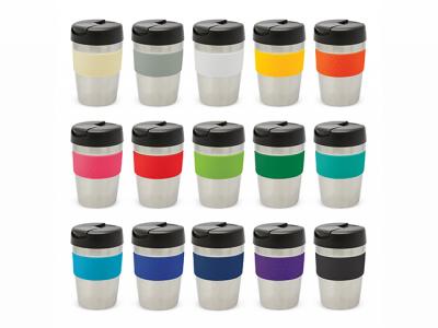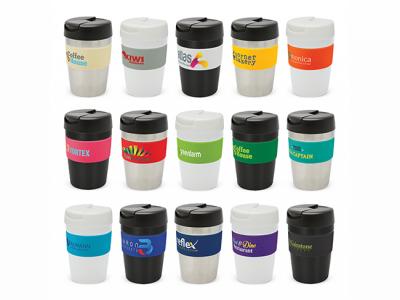 Personalise your deeta stainless double wall cofffee cups (340ml) or custom design travel mugs for your marketing campaign.
