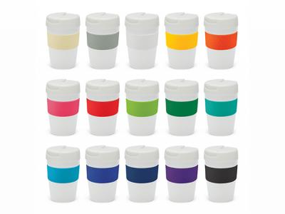 Custom brand these ceramic reusable coffee cups (350ml) or one of our best-selling promotional mugs»travel mugs with your company logo!