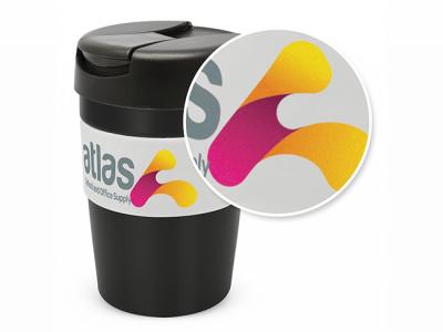 Silkscreen Printing your promotional deeta stainless double wall cofffee cups (340ml):Your promotional deeta stainless double wall cofffee cups (340ml) can be silk screen printed in 1 or more colours. Costs shown include a 1 colour logo print on your custom branded deeta stainless double wall cofffee cups (340ml). We can print more than 1 colour, however it incurs extra costs. We can achieve a perfect PMS colour match for the print.