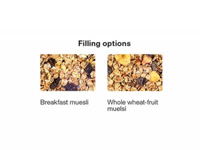 Content: Seitenbacher breakfast muesli or whole wheat-fruit muesli, 40g