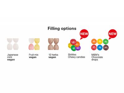 Made of white cardboard in compostable freshness seal with various filling options: Micro Sweets, 25 g - With surcharge: Skittles chewy candies, 30g or M&Ms chocolate drops, 30g