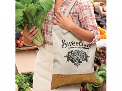 These promotional shopping bags are the perfect item to support the environment and to ban plastic bags! They are made of unbleached 280gsm heavy cotton canvas and feature a stylish cork front panel as well as long comfortable handles so that they can be carried on a shoulder.