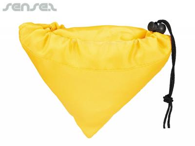 Kylie Foldaway Shopping Tote Bags have an open main compartment with double handles. Unique fold-away function gathers into corner with drawstring closure.