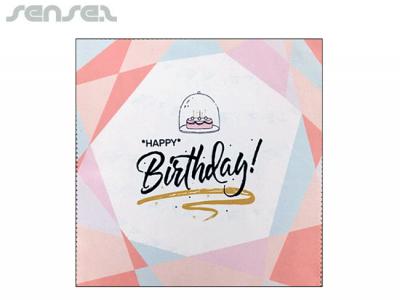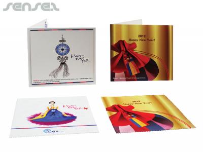 Promotional custom Greeting cards with microfiber towel inserted. Get your logo or message printed onto these screen cleaners! Great giveaway item for your next marketing campaign! Our Full colour custom design lens clothes come with your logo printed on one side. Additionally, they come nicely presented in the inside of a custom design greeting card.