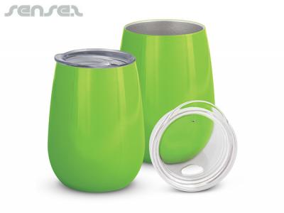 Incorporate branded ovoid vacuum thermo tumbler cups (300ml) in your next promotional campaign