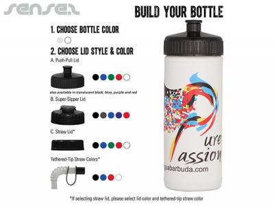 Full Colour BPA Free Water Bottles include a full colour print and includes your choice of lid style: push-pull, super sipper or straw with tethered-tip.This bottle is BPA-free and Meets FDA Requirements. Choose your bottle color as well as lid type & color. Contrasting colours are recommended to make these stand out!