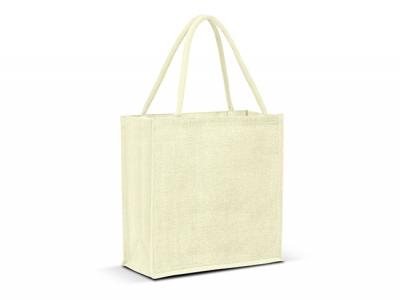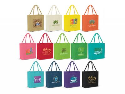 Custom jute bags are a laminated jute tote bag with a gusset and padded cotton handles. The Custom Printed Jute Bags and handles have been dyed to match. These are a fantastic branded bag keeping your brand environmentally friendly.