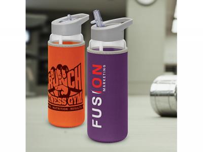 Incorporate branded borosilicate glass drink bottles with neoprene sleeve (700ml) in your next promotional campaign