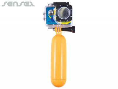 Camera Accessory pack includes: waterproof housing, floating handle, helmet mount, handle bar mount, selfie stick / tripod mount, tie down straps, velcro straps, adhesive pads for mounting, USB to Micro USB cable, safety cable, angle adjusters.