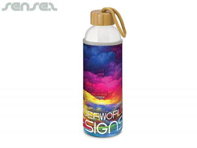 Bamboo Borosilicate Glass Drink Bottles are a sophisticated 600ml borosilicate glass drink bottle which features an insulating soft neoprene sleeve that helps to keep drinks cool. The eye catching full colour print brings your brand to light. It features a bamboo lid with a matching braided carry handle and matching binding in the sleeve. Borosilicate is a lightweight glass which is exceptionally strong and shatter resistant. Blast your logo forward with this eco friendly must have drink bottle.