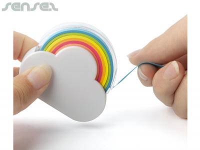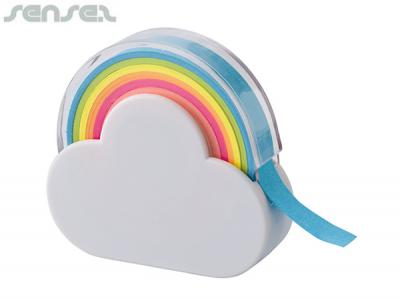 Rainbow Memo Tape Dispensers are a plastic memo tape dispenser in the shape of a cloud. The cloud-shaped dispenser is white and the colours of the memo tape are blue, green, yellow, orange and pink (1 m each). Brighten up the office with this branded Memo Dispenser.