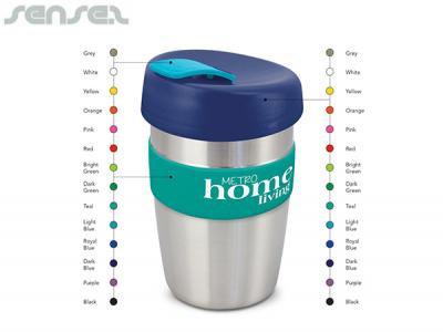 Lid/Band/Flip Piece Colours: Grey, White, Yellow, Orange, Pink, Red, Bright Green, Dark Green, Teal, Light Blue, Dark Blue, Navy, Purple, Black. Cup: Silver