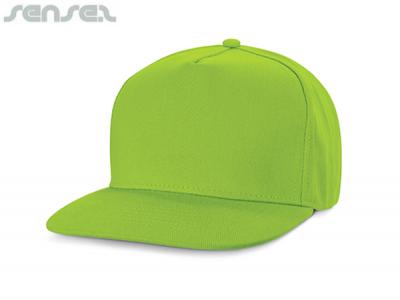 Custom Baseball Caps are a premium structured five panel cap which is manufactured from heavy brushed cotton. It has a trendy flat peak, embroidered eyelets, a sweat band and an adjustable snap back closure that allows one size to fit most people.