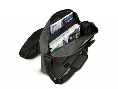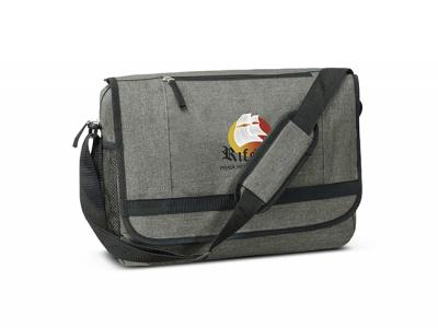 Custom Satchel Bags are a stylish messenger bag which is manufactured from poly-canvas that is woven with different coloured fibres to create a very fashionable heather style two tone fabric. It has an adjustable shoulder strap with a shoulder pad and an internal padded laptop compartment. Other features include a multi-functional organizer, an external front pocket and a mesh water bottle holder.