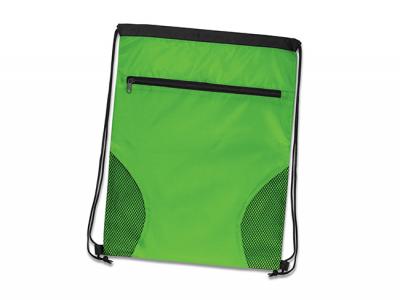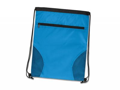 Addena Drawstring Backpacks are a stylish drawstring backpack with decorative mesh accents and a large zippered external pocket. It is manufactured from 210D polyester with robust braided loops at the base to secure the drawstrings.