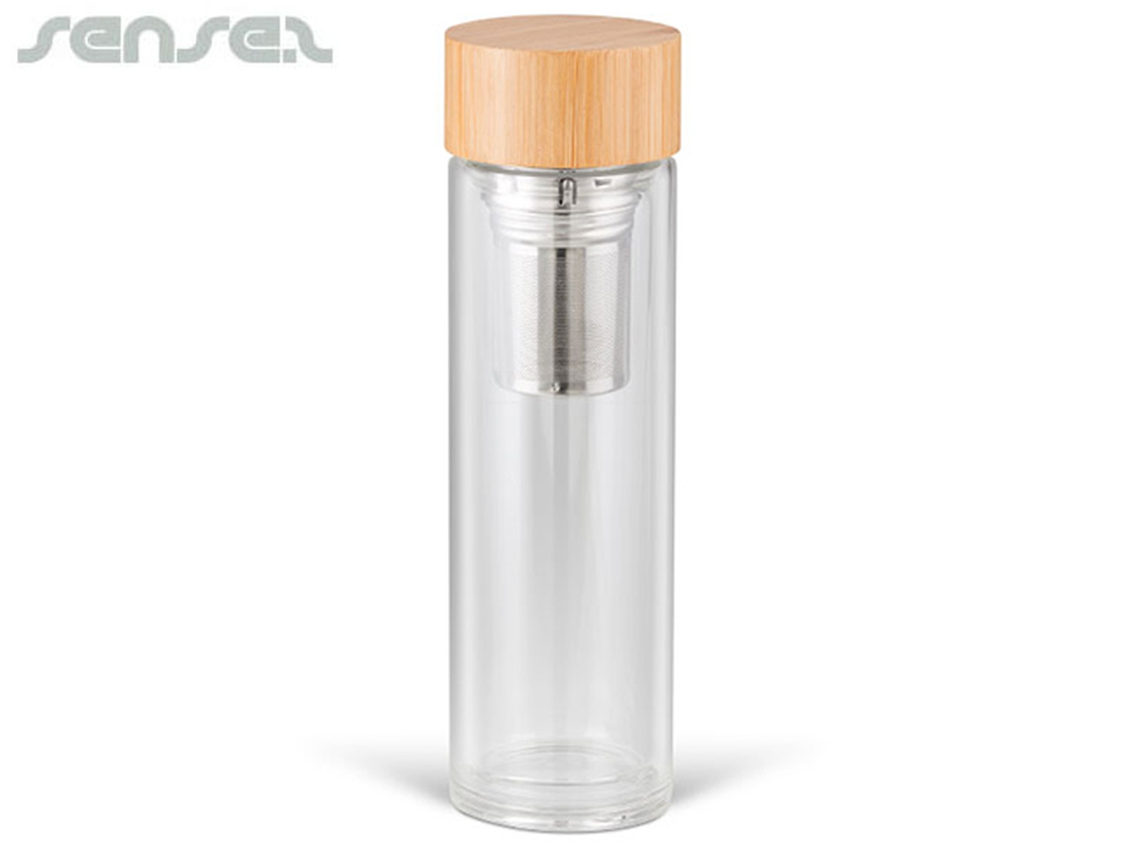 Promotional Detox Bamboo Double Walled Glass Tea Infuser Bottles (400ml)