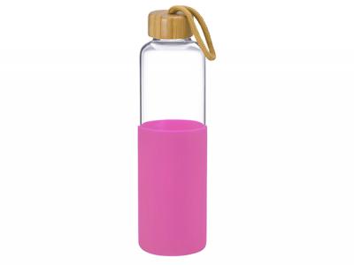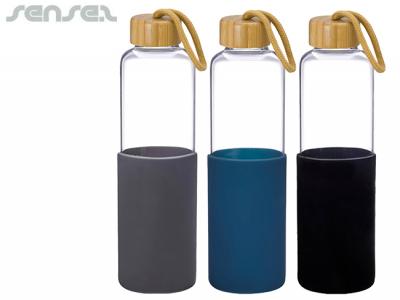 Promotional Natural Bamboo Glass Drink Bottles With Silicon Sleeve (550ml)