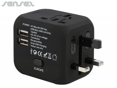 Personalise your coloured usb international travel adapters or custom design universal travel adaptor for your marketing campaign.