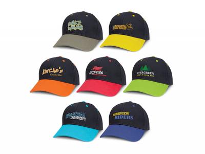 Personalise your baseball caps (coloured peak) or custom design baseball caps for your marketing campaign.