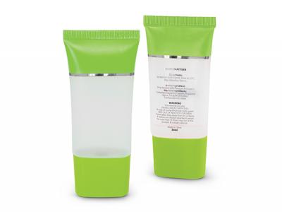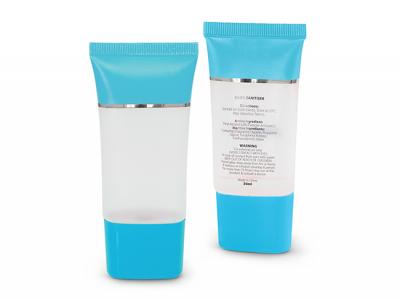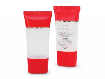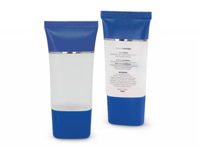 Pure Gel Hand Sanitiser in a stylish tube with a secure screw on cap. It has full ingredient information on the back of the tube.