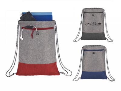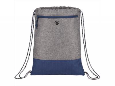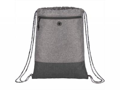 Ashen Drawstring Backpacks features an earbud port, front zippered pocket, drawstring closure and practical cords with a graphite design.